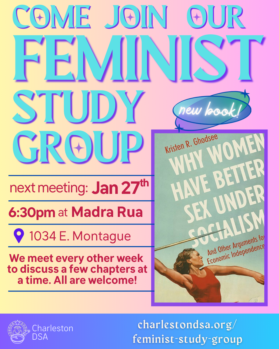 New year new book!! Join the feminist study group on 2/24 for a discussion on Chapter6 of Kristen Ghodsee's Why Women Have Better Sex Under Socialism.